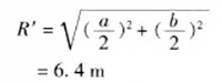 (4)校核按安装间距a=8m、b=10m布置后,探测器到最远点水平距离R’是否符合保护半径要求。按式: