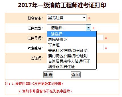 2017年黑龙江一级注册消防工程师准考证打印入口:中国人事考试网