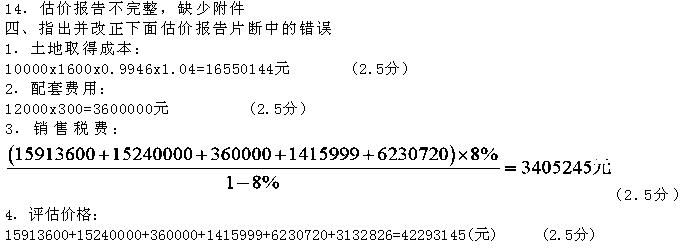 三、下列估价结果报告和估价技术报告存在多处错误,请指明其中的13处