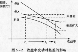 参考解析:当市场整体收益率水平小于期货的票面利率时,久期较小的券会成为最便宜可交割债券。如图10—1所示,当收益率小于K时,最便宜可交割债券是券A,两者基差不会有显著变化。当收益率超过期货票面利率Y0,到达Y2的位置,则最便宜可交割债券由券A变成了久期较大的券B。由于券B的久期大于券A的久期,因此在收益率上涨时,券B和期货的下跌幅度会超过券A,期货和原最便宜可交割债券券A的基差会扩大,基差扩大,则基差交易的收益增加。