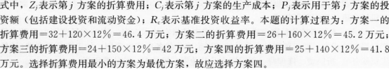18[单选题] 某工程施工现有4个对比技术方案。方案一是过去曾经应用过的,需投资l20万元,年生产成本为32万元;方案二、方案三、方案四是新技术方案,投资额分别为160万元、150万元、140万元,年生产成本分别为26万元、24万元、25万元。在与方案一应用环境相同的情况下,设基准投资收益率为l2%,则采用折算费用法选择的最优方案是( )。
