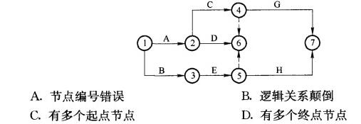 某分部工程双代号网络计划如下图所示,根据绘图规则要求,该图的错误为()。
