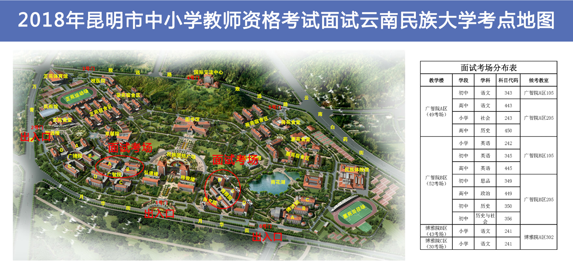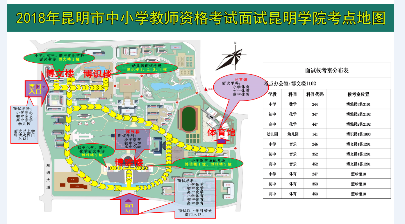 2018下半年昆明教师资格证面试考点地图及候考室分布