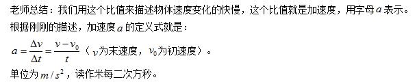 学生:既然时间、速度变化量都不同,那么我们用一种数学上的方法,就是看单位时间内速度的变化量,也可以得出结论。