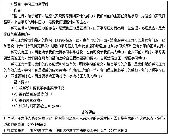 教师总结:我们中学生目前的主要任务就是学习,在学习生活中难免会出现压力,因此,出现上述生理、心理的反应也是正常现象,大家需要从容面对。