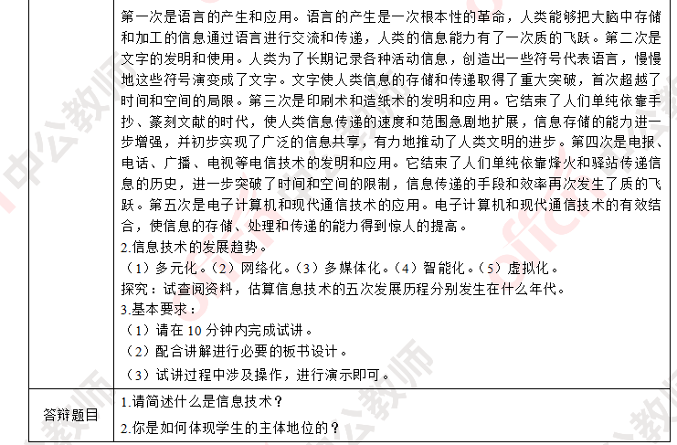 教师对学生的回答予以评价,学生回答的没错,但都只回答了信息技术的一部分,不够全面。不同的专家和著作对信息技术有不同的定义。并请同学阅读课本上关于信息技术的定义。