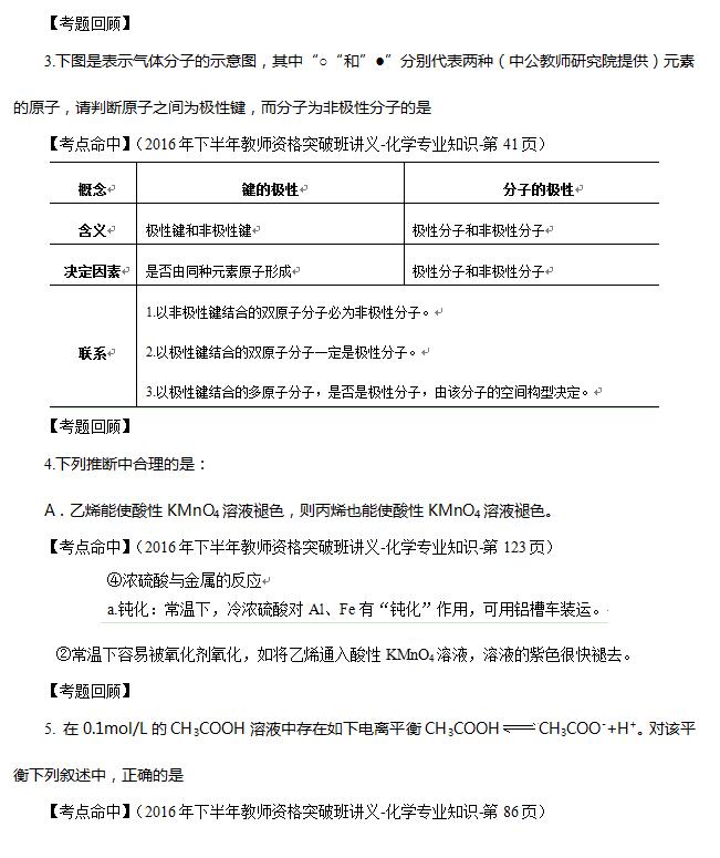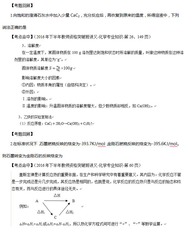 2016年下半年教师资格证考试真题及答案——初中化学: