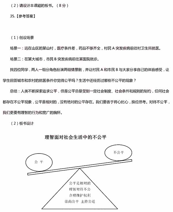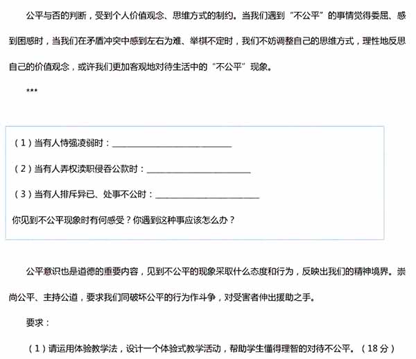 2017上半年教师资格学科知识与教学能力真题答案:初中思想品德(7)