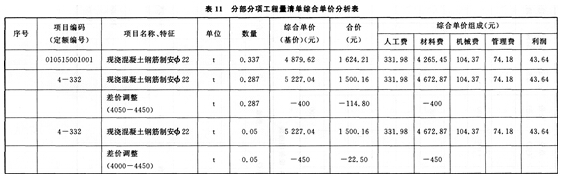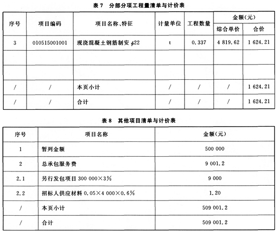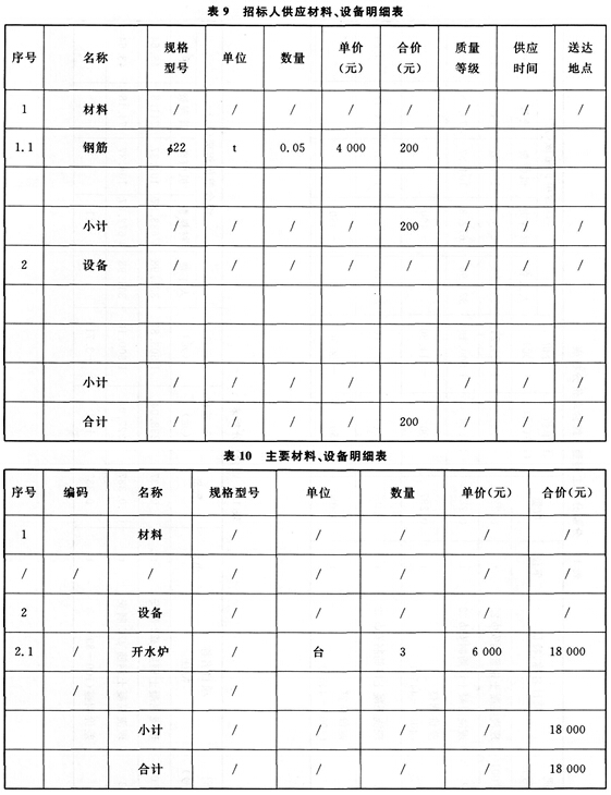 1.招标人供应φ22钢筋50k9,统一按4000元/t计算;余下的钢筋由承包人购买,承包人按4050元/t报价。