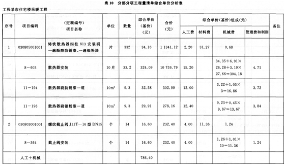 1.材料价格:四柱813散热器足片27.66元/片,中片26.28元/片,酚醛防锈漆13元/kg,酚醛清漆各色9.87元/kg,螺纹截止阀J11T一16型DN15,10元/个,其余未计价材料不计价。