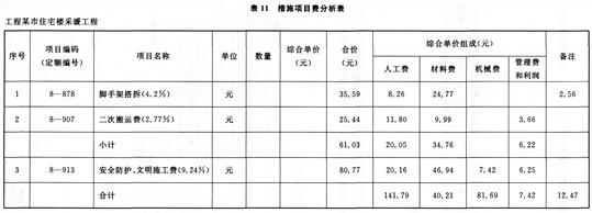 2.考虑设计变更及材料价差,暂列金额为5000元。可竞争措施项目仅计取“脚手架搭拆费”、“二次搬运费”。
