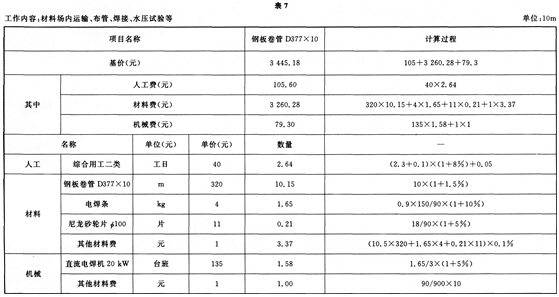 5.其他材料费按钢板卷管、电焊条、尼龙砂轮片材料费之和的0.1%计算;
