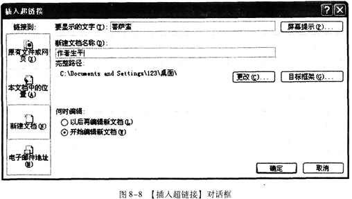步骤3在【新建文档名称】文本框中输入“作者生平”,如图8-8所示。