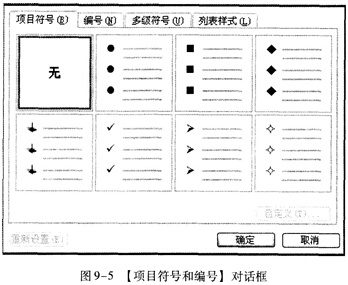 步骤1选中多级符号的文本,单击【格式】菜单→【项目符号和编号】命令,打开【项目符号和编号】对话框,如图9-5所示。