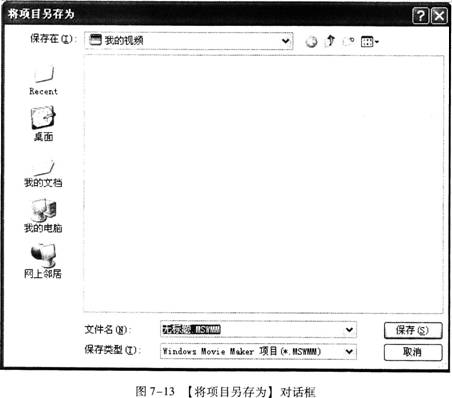 步骤10单击【文件】菜单→【保存项目】命令,打开【将项目另存为】对话框,如图7-13所示。