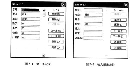 步骤1单击【数据】菜单→【记录单】命令,如图7-1所示。