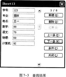 步骤3单击【下一条】按钮即显示符合条件的第一条记录,如图7-3所示。