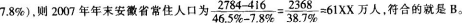 由第三段可知,2007年安徽省城镇人口为(2784-416).玎人,人口城镇化率为(46.5%一