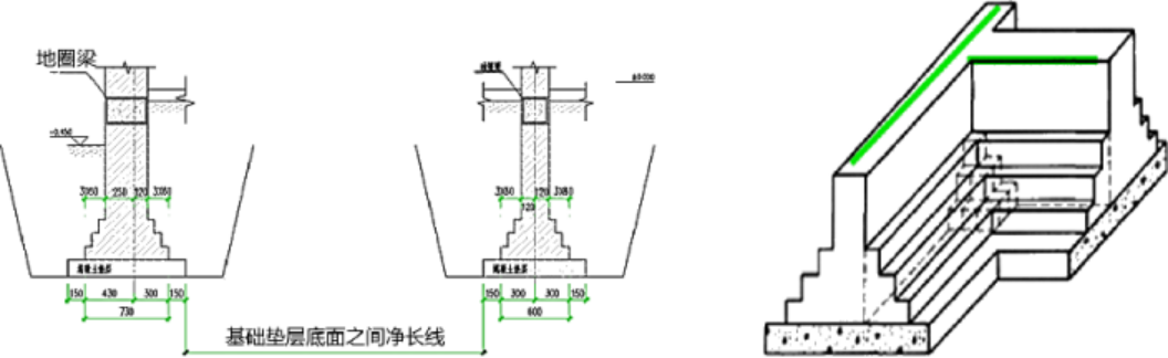内墙沟槽长度,按基础垫层底面净长线计算;