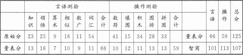 下面是某求助者的WAIS—RC的测验结果