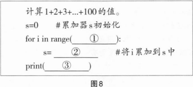 运行如图5所示的Python程序片段,可以统计“1,2,3,4”四个数字能够组成多少个互不相同且无重复数字的三位数。横线