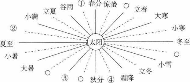 图中①②③④代表的节气,正确的是( )。