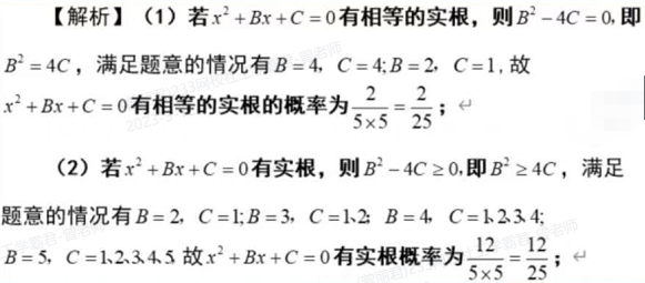 (2)求X2+BX+C=0有实根的概率。(4 分)
