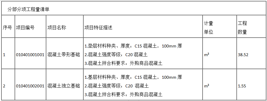 2. 编制现浇混凝土带形基础、独立基础的分部分项工程量清单。