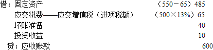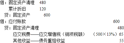 B公司的债务重组损益=600-(600-120)-500×13%=55(万元)