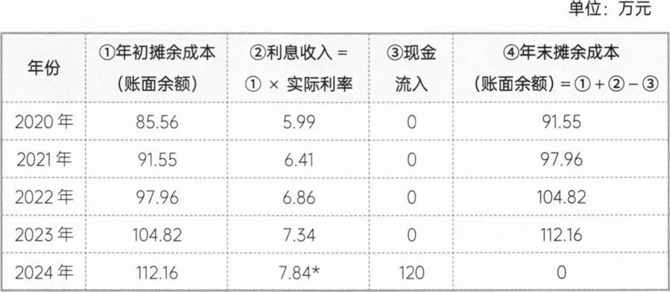 ★最后一期利息收入金额为倒挤.即120—112.16=7.84(万元)。