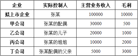 某公司拟首次公开发行股票并在上交所科创板上市,控股股东实际控制人是张某。张某部分亲属控制的企业也从事与该公司主营业务相同的业务,存在竞争,具体情况见下表(单位:万元)。