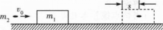 (12分)如图,一质量为m1的木块静置在光滑的水平面上,一质量为m2的子弹以速度v0水平射入木块,进入木块s距离后相对木