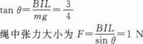 平衡后,安培力与重力的合力与绳中张力等大反向,设细绳与竖直方向的夹角为θ,则