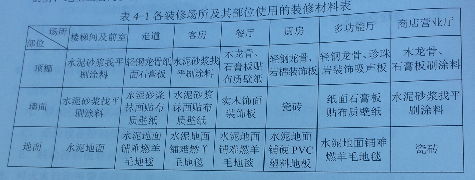 3.指出本案例中装修材料不符合规定的场所及其部位。