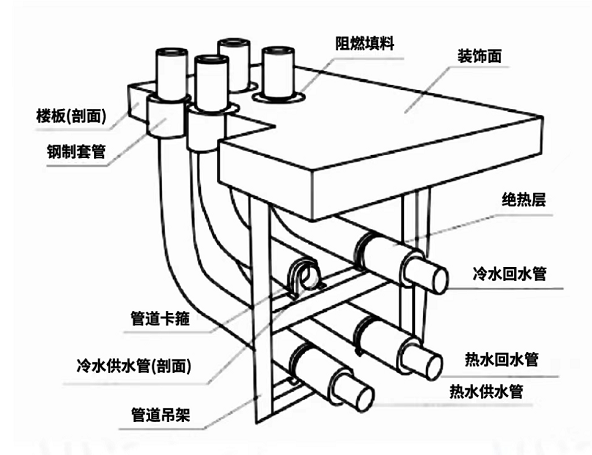 问题二:管道穿楼板套管采用阻燃填料封堵。