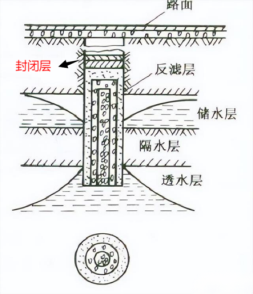 AB井壁与填充料之间应设反滤层;渗井顶部四周应采用黏土填筑围护并加盖封闭。