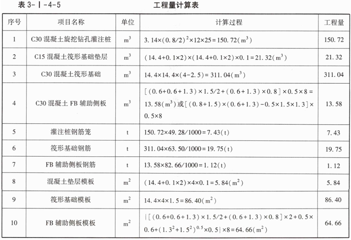 表3-I-4-2中给定的信息,按现行国家标准《房屋建筑与装饰工程工程量计算标准》GB/T50584—2024的计算规则,在答题卡表3-I-4-2“工程量计算表”中,列式计算该烟囱基础分部分项工程量。(筏板上8块FB辅助侧板的斜面在混凝土浇捣时必须安装模板)