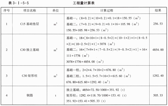 1.根据该体育场馆基础设计图纸、技术参数,按现行国家标准《房屋建筑与装饰工程工程量计算标准》GB/T50854—2024的计算规则,计算该大跨度体育场馆钢筋混凝土基础分部分项工程量(表3-I-5-2),已知:钢筋混凝土独立基础综合钢筋含量为72.50kg/m³,钢筋混凝土矩形基础柱综合钢筋含量为118.70kg/m³。
