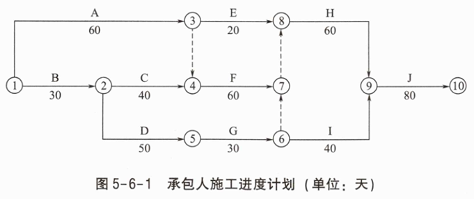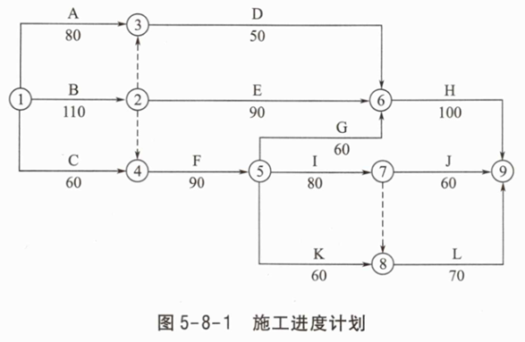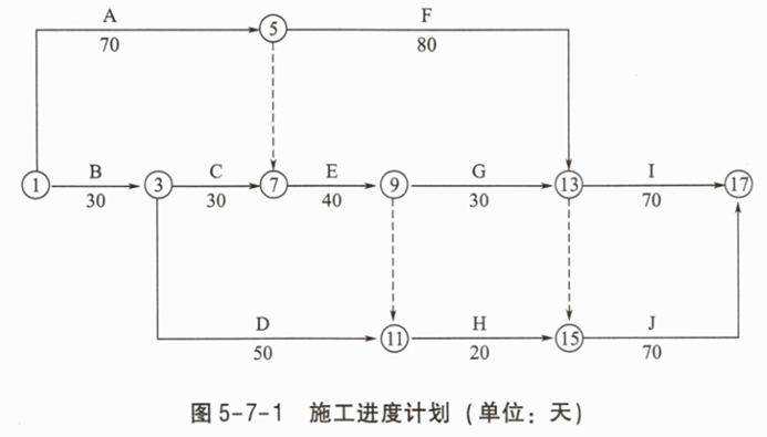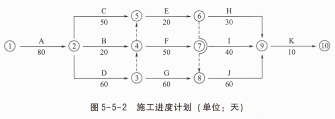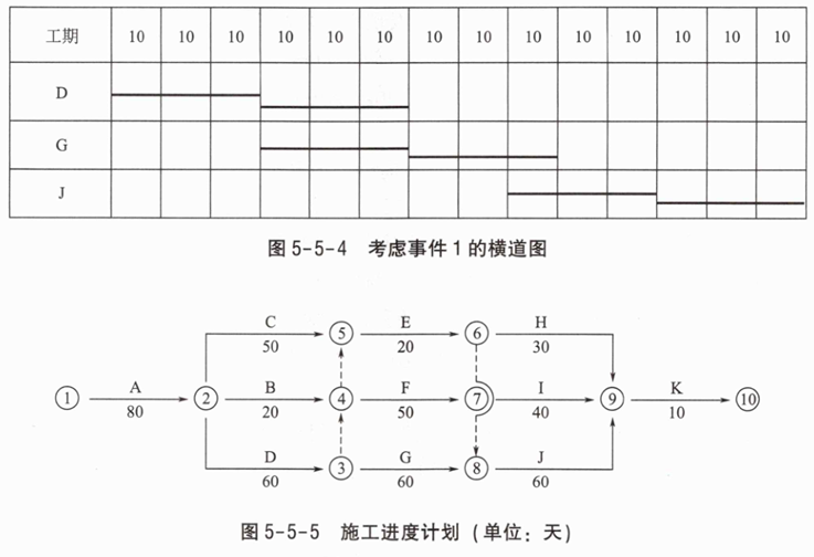 考虑事件1的横道图见图5-5-4。施工进度计划见图5-5-5。