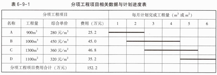 (2016年) 某工程项目发包人与承包人签订了施工合同,工期5个月。分项工程的造价数据与经批准的施工进度计划如表6-2-