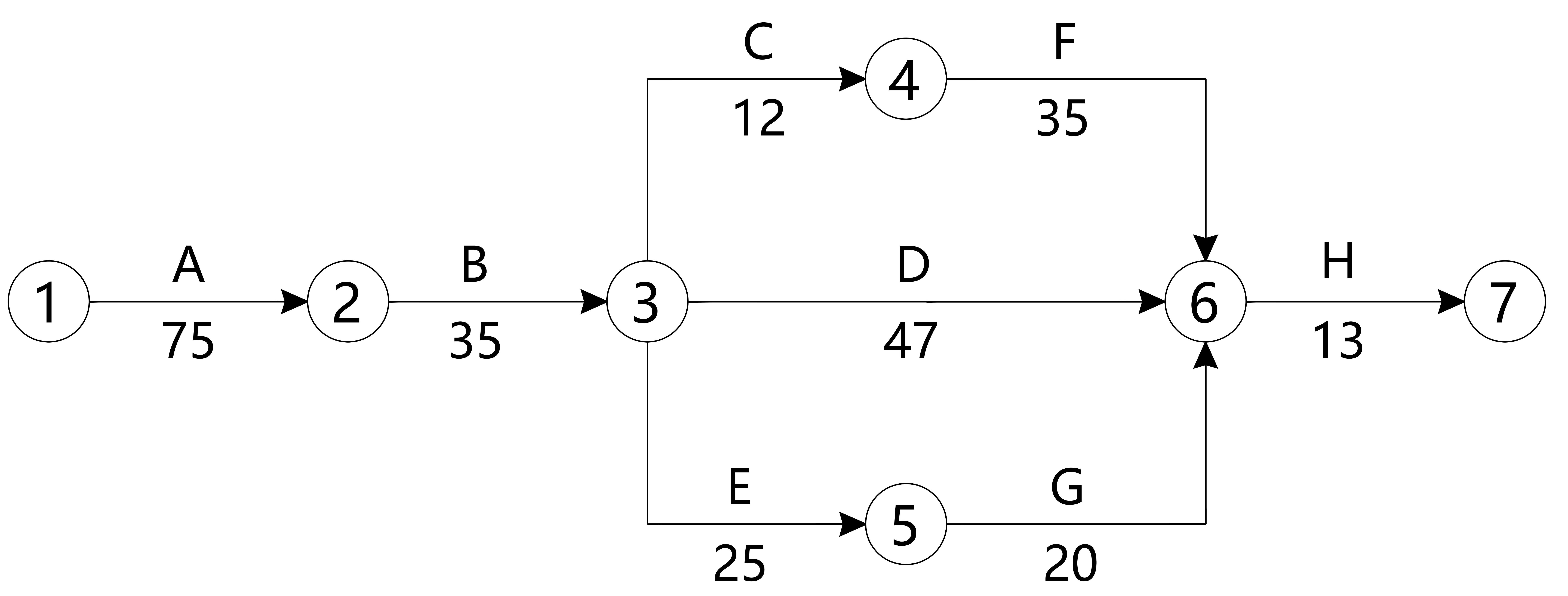 关键线路:B→D→H和 B→C→F→H两条。