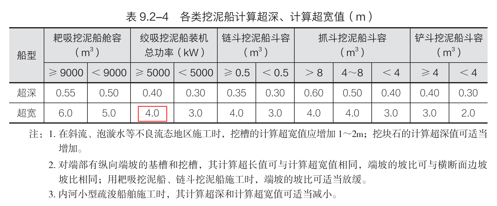 装机总功率为10000kW绞吸挖泥船的计算超宽值是( )。