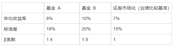 A.基金B的特雷诺比率大于基金A的特雷诺比率