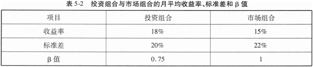 一个投资组合和市场组合在过去3年的月平均收益率如表5-2所示,无风险收益率为6%。