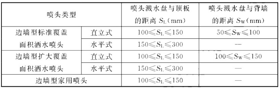 C.采用直立式边墙型喷头,溅水盘与背墙的距离80mm