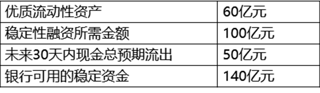 在2020年新冠疫情背景下,某中小型商业银行想提高自身流动性风险管理的专业化水平,根据下表情况,计算该行的净稳定融资比率