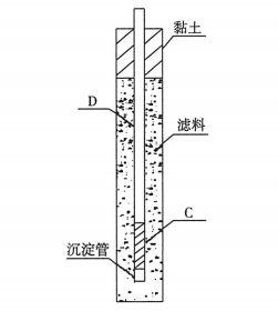 事件一:根据施工范围内的地质水文条件,施工单位选择中700mm管井降水方法,沿基坑长度方向上双排布置,井间距为 4m。并点管安装到位后,作业人员及时向孔内投放了滤料,上部用黏土填满压实,结构示意图如图所示。